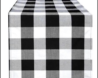 Xmas Plaid Check Table Runner, Reversible Cotton Burlap Table Runner Buffalo Plaid Kitchen Decor, Farmhouse Black and White Table Runner for Christmas ...