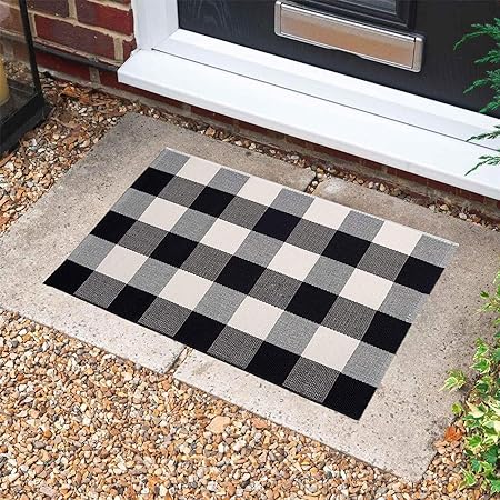VUDECO Buffalo Plaid Rug 23.5" x 52” Black and White Kitchen Rug Check Front Door Mat for Home Decor Indoor & Outdoor Laundry Bathroom Sitting Room Porch Farmhouse Entryway Layering Mats Checkered 425 $19 99 Save 20% with coupon Get it as soon as Thu, Aug 19 FREE Shipping on orders over $25 shipped by Amazon