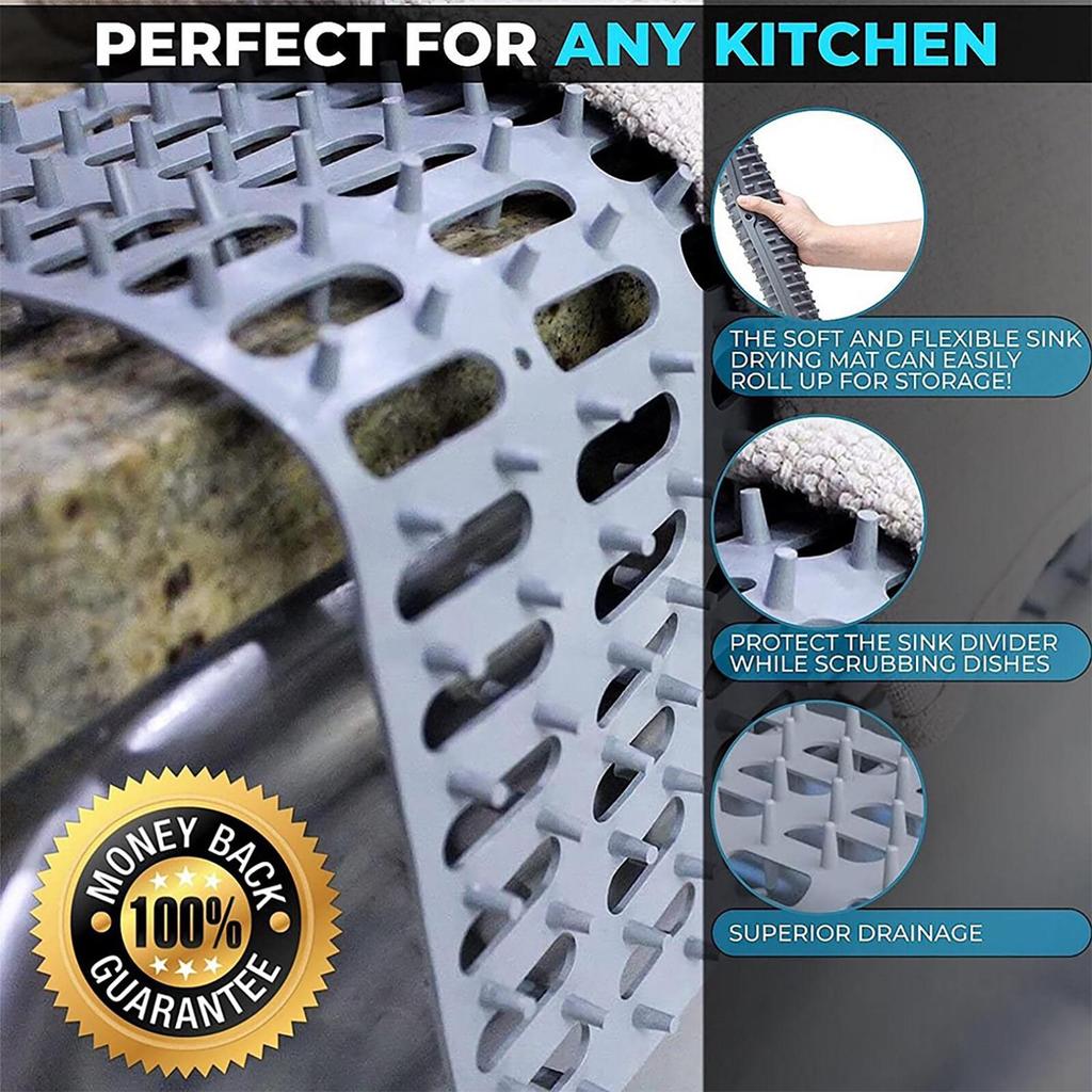 1. 2Pcs Sink Mat Adjustable Kitchen Sink Saddle Eco-friendly Sink Protector PVC Material Modern Pebble Design Cushions Sinks Dish Drying Mat for Kitchen Accessory 12″ x15.8″ (Grey) Buy on Amazon This sink saddle is made of Polyvinyl chloride (PVC), soft material, safe and non-toxic, it keeps your kitchen sinks clean and scratch free ...