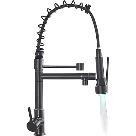 NeierThodore Commerical Pull Down Kitchen Faucet Sprayer with LED Two Spout Single Handle Oil Rubbed Bronze Kitchen Sink Faucet Brass Stainless Steel ...