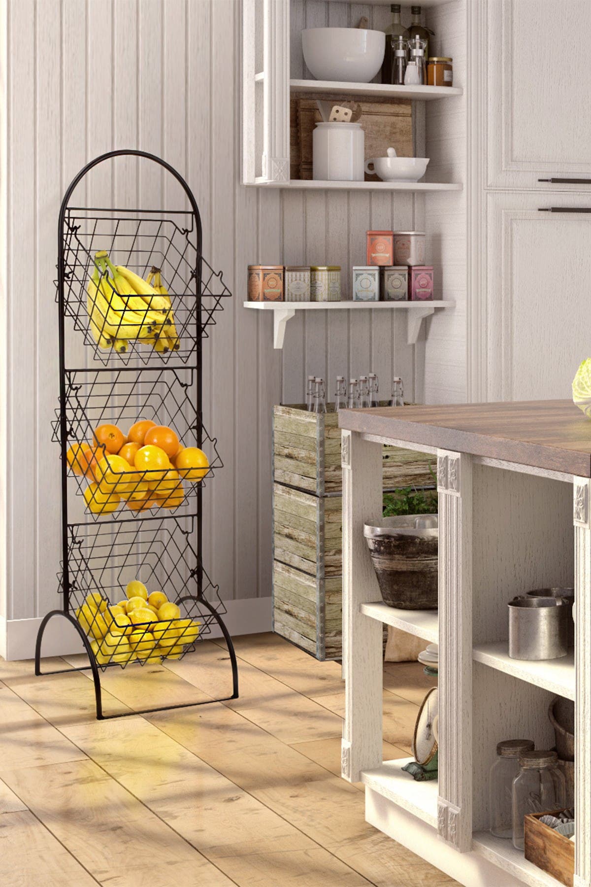 3 tier kitchen corner plate rack storage holder stand plates cupboard organiser. Kitchen storage stacking stackable basket fruit vegetable rack 1 2 3 4 5 tier. mDesign 3 Tier Vertical Standing Kitchen Pantry Food Shelving Unit - Decorative Metal Storage Organizer Tower Rack with 3 Basket Bins to Hold and Organize Fruit, Potatoes, Snacks. STANDING STORAGE: Keep kitchens neat and tidy with this storage shelf; This durable organizer has 3... How to Make a 3 Tiered Basket Stand. This post contains some affiliate links (that means if you make a purchase after clicking a link, there's no additional Learn how to repurpose a hanging fruit basket to use as extra storage in an office, craft room, kitchen, or anywhere you need a little extra organization. As a stunning addition to your kitchen countertop, this stand features an open concept design with three round baskets and carry handle for storage and display. 3-Tier Basket Stand for storage and display. Made of wrought iron with black powder coated finish. Wood carry handle for easy transport.