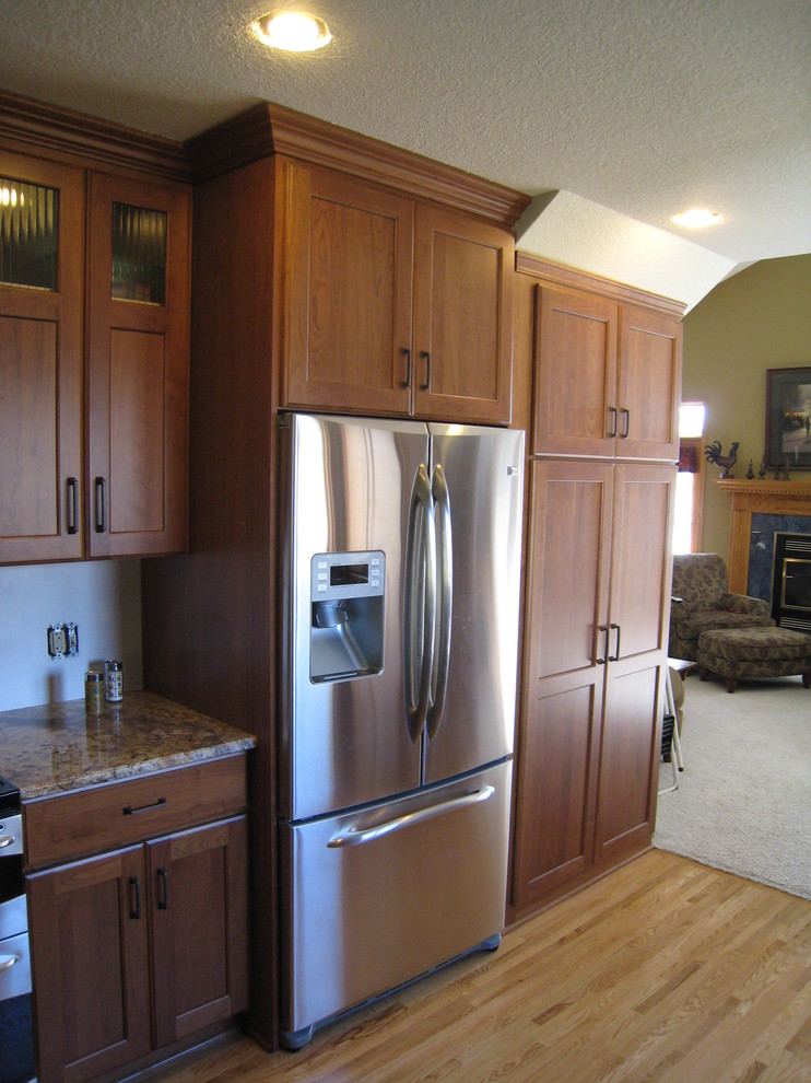 Kitchen cabinets refrigerator surround. Hampton Bay 84 in. x 24 in. Refrigerator End Panel Kit gives your refrigerator the built-in look of custom kitchens. The kit includes one 84 in. H panel, one 6 in. H panel, one 12 in. panel, one piece of decorative molding, and mending plates (for use only when adding 6 or 12 in. panel to 84 in. H panel). You can obviously achieve the look with custom-built cabinetry, but there are less expensive options to get you the same high-price look. Off-the-shelf kits—like these from Home Depot —let you build your own box for your fridge, enclosing it with finished panels on either side and adding cabinets above for about $400-$500 total. 1-48 of over 20,000 results for "refrigerator cabinet" Price and other details may vary based on product size and color. Ameriwood SystemBuild Clarkson Mini Refrigerator Storage Cabinet (Black) 338 $170 00 Get it Fri, Feb 18 - Thu, Mar 3 FREE Shipping Ameriwood Home Clarkson Mini Refrigerator, White Storage Cabinet 76 $119 99 30-cu ft Built-In Side-by-Side Refrigerator with Ice Maker (Panel Ready) Model # KBSN608EPA Find My Store for pricing and availability 58 KitchenAid 20.8-cu ft Built-In French Door Refrigerator with Ice Maker (Panel Ready) Model # KBFN506EPA Find My Store for pricing and availability KitchenAid 5-cu ft Built-In Mini Fridge (Panel Ready)