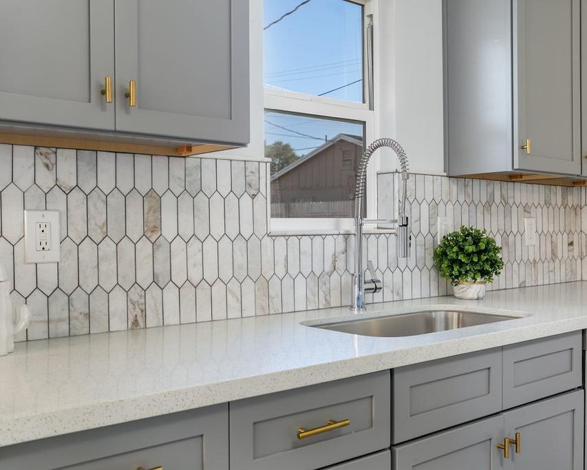 Kitchen Tiles, Kitchen Mosaics, Kitchen Backsplash & More Use for a kitchen backsplash, a study or wine room, accent wall, fireplace surround, powder room floor, or entry foyer. Elegant and modern, Granada Blend Mosaic in Marble makes for the perfect backsplash for any kitchen or bathroom.