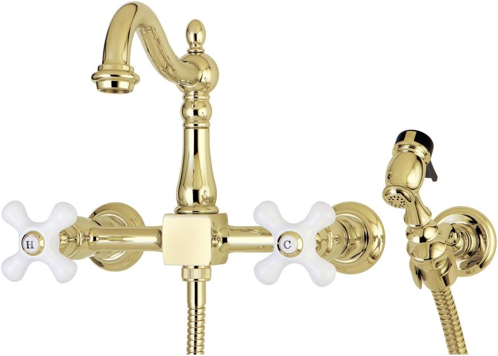 Kingston Brass KS177ALBSAC Heritage Kitchen Faucet, Antique Copper Make sure this fits by entering your model number. Solid brass construction Drip-free ceramic disc cartridge Deck mount 2-hole installation 1.8 GPM/6.8 LPM Spout Flow rate at 60 PSI 10-1/4″ spout clearance 8-1/2″ spout reach 13-3/16″ spout height Dual lever handles meet ADA guidelines Includes matching brass side sprayer Specifications