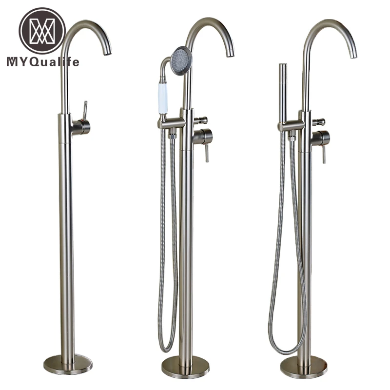 Brushed Nickel Free Standing Bathroom Tub Faucet Single Handle Rotation Bathtub Mixer Taps Floor Mounted