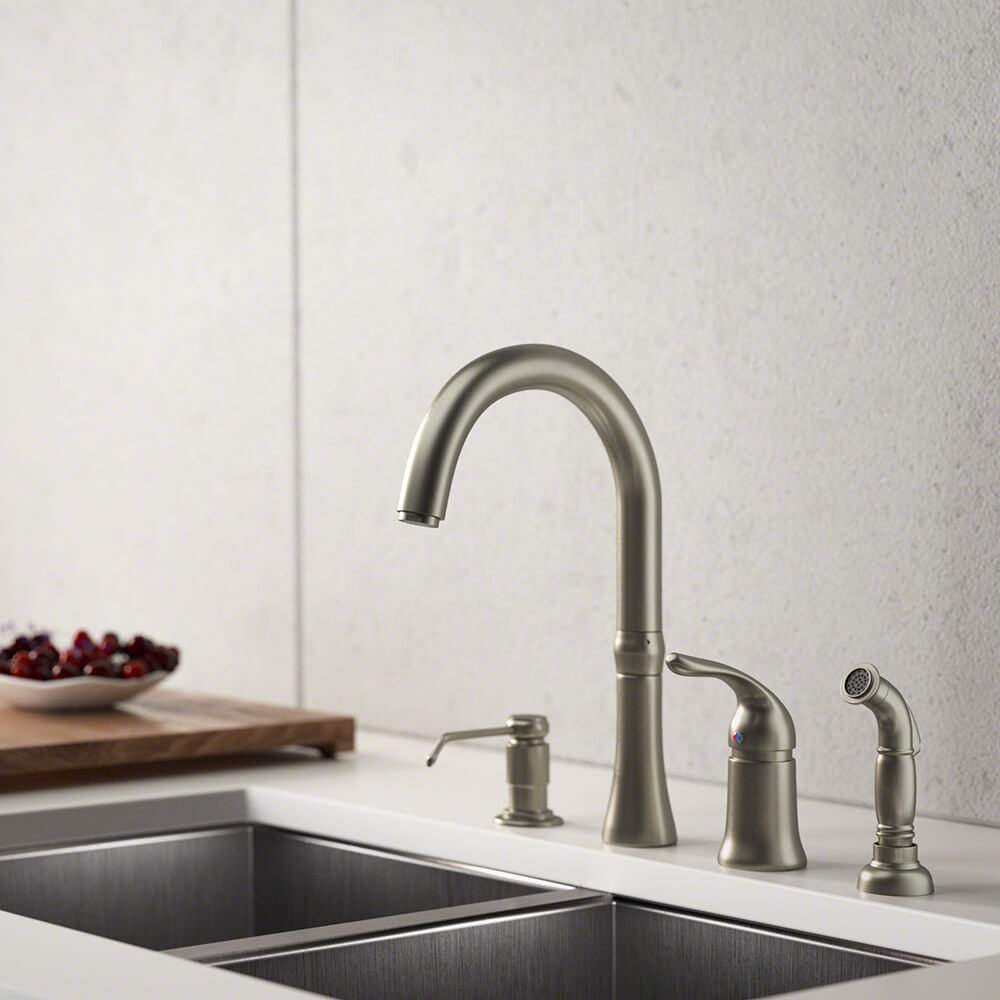VALISY Commercial Lead-Free Brushed Nickel Two Handle Kitchen Sink Faucet with Side Sprayer, 3 Hole or 4 Hole Faucets for Rv Kitchen Sinks with ...