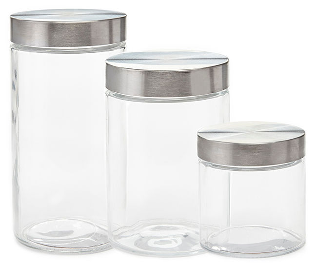 Amazon.com: Kitchen Storage Jars Set of 3 - Variety Pack Square Glass ... This item: Kitchen Storage Jars Set of 3 - Variety Pack Square Glass Jars with Metal Lids - Durable Canister Sets for Kitchen Counter - Multipurpose Food Storage Containers- Holds 34oz, 68oz, 90oz $29.99