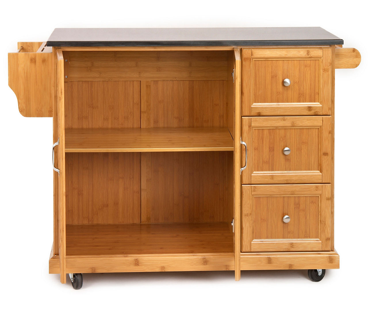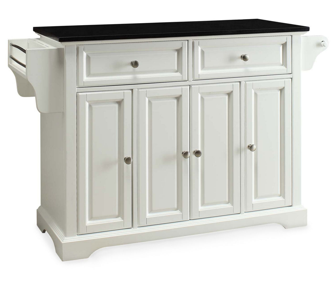 Granite Top 4-Door White Kitchen Cart - Big Lots Its granite top insert is adorned with beautiful detailed molding while its drawers allow proper storage for kitchen gadgets and utensils. Four doors open up to ...