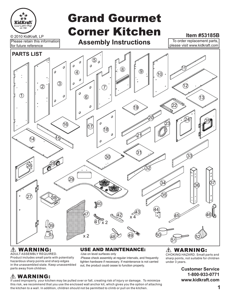 KidKraft Grand Gourmet Corner Kitchen Playset 53185 - The Home Depot Playing with our grand gourmet kitchen will make any kid feel like a world-class chef. This deluxe kitchen is loaded with fun details, including an innovative structure and an entire set of metal accessories. This kitchen is perfect for children ages 3 and up. Dishwasher, oven, microwave, refrigerator and freezer doors all open and close Grand Gourmet Corner Play Kitchen - KidKraft Grand Gourmet Corner Play Kitchen 28 Reviews 11 Questions CA$301.99 In stock 3+ years Top Rated Playing with our KidKraft Grand Gourmet Kitchen will make any kid feel like a world-class chef! With a four-piece metal accessory kit already included, kids can get started right away. Cloth curtains behind the sink open ... - + Add to Cart Grand Gourmet Corner Kitchen - KidKraft For the rest of the world, expect delivery in 10 - 14 days. If you have a question about a part, please contact us at customer service: For US and Canada Customers: Telephone: 1-800-933-0771 FAX: (877) 933-0771 Email: customerservice@kidkraft.com. For EU, Middle East, Australia and South Africa Customers. Telephone: +31 (0)20 305 8620 Email ...