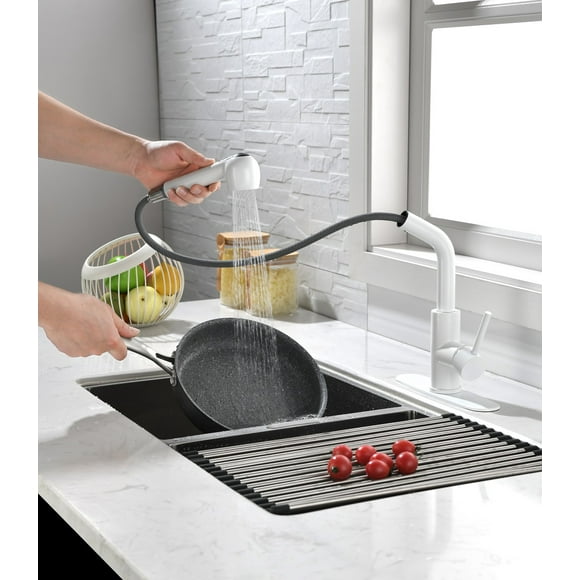 White pull down kitchen faucet. 10 Best Touch Activated Kitchen Faucets in 2022 - MyHomeDwelling The YITAHOME Touch Kitchen Faucet with Pull Down and Out Sprayer is another fairly priced, and incredibly reliable touch activated kitchen faucet. Using YITAHOME's sensitive touch technology, this unit carries optimized touch devices on every part of the neck, and features 0.3s sensitive sense for amazingly quick opening/closing. The best pull down kitchen faucet | WHNT.com Top pull down kitchen faucet for the money. Ufaucet Single Lever Single Handle Pull Out Sprayer. What you need to know: This is a compact faucet with a pull out sprayer.It has 360 degrees of ... The Best Kitchen Faucets - Broadway Panhandler Top 5 Kitchen Faucets Brands. Best overall: American Standard. Best high end faucets: Delta Faucets. Best luxury kitchen faucets: Kohler luxury kitchen faucets. Budget friendly and affordable: Premier Faucets. Best pull down with sprayer: Vigo Kitchen faucets. We took real consumer reviews and studied kitchen faucet consumer reports before ... 7 Types of Kitchen Faucets to Give Your Sink an Instant Update Our recommendation: Moen Arbor One-Handle Pulldown Kitchen Faucet - Get it at Amazon for $236.50. This faucet offers a few bells and whistles in addition to the pull-down option; there's also ...