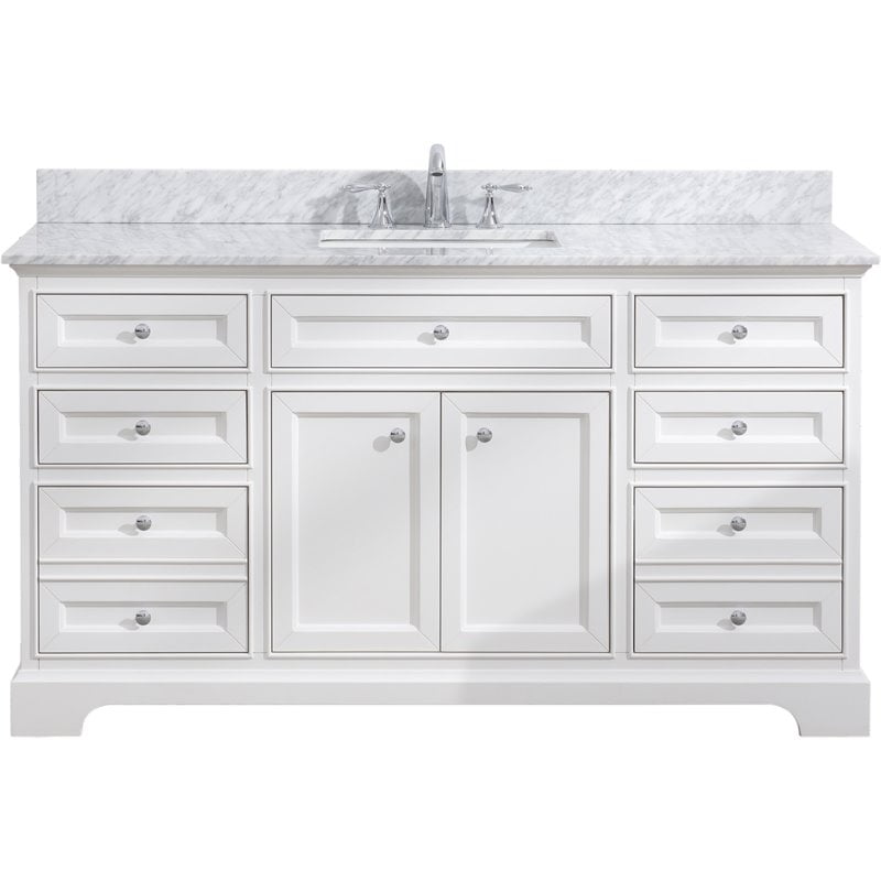 Ari Kitchen and Bath 60" Single Bathroom White AKB-LUZ-60-WH Luz Vanity Set 1 offer from $1,476.00 Silkroad Exclusive JB-0270-CM-UWC-56 Countertop Marble Stone Single Sink Bathroom Vanity with Drawer Cabinet, 55.5", Medium Wood 1 1 offer from $1,342.00 Silkroad Exclusive Carrara White Marble Top Off Center Single Sink Bathroom Vanity with Cabinet, 36", Brown 3 2 offers from $1,028.00