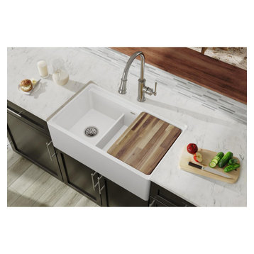 Farmhouse & Apron Kitchen Sinks | The Sink Boutique - color: white BOCCHI Contempo 30" Fireclay Farmhouse Apron Single Bowl Kitchen Sink, White, 1346-001-0120 Sale $516 75 Reg. $795.00 Nantucket Sinks Cape 36" Fireclay Farmhouse Sink, White, Yarmouth-36W Sale $1,049 99 Reg. $1,399.99 Sale Elkay 33" Fireclay Farmhouse Kitchen Sink, 40/60 Double Bowl, White, SWUF3320WH Sale $1,053 05 Reg. $1,919.86 1 review