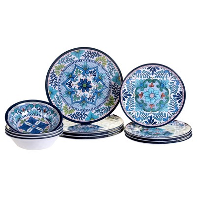 Melamine Outdoor Dinnerware | Wayfair 12 Piece Melamine Dinnerware Set is perfect for both indoor and outdoor dining. Constructed of melamine, this dinnerware set is durable and lightweight, making it perfect for big family gatherings with children and outdoor events. This set features a beautiful floral design with a hand-painted effect.