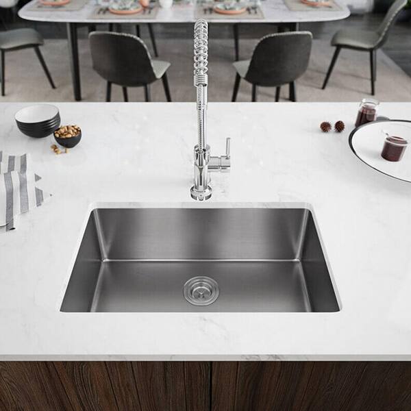 Stainless Steel - Single Bowl - Undermount Kitchen Sinks - The Home Depot KRAUS Standart PRO 32in. 16 Gauge Undermount Single Bowl Stainless Steel Kitchen Sink. Shop this Collection. Model# KHU100-32 (2607) $ 294 95 $ 329.95. Save $ 35.00 (11 %) Exclusive. Glacier Bay All-in-One Drop-in/Undermount 18G Stainless Steel 33 in. Single Bowl Kitchen Sink with Right Drain with Pull-Down Faucet.