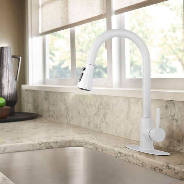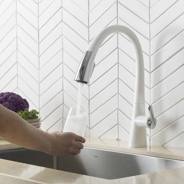 White - Pull Down Kitchen Faucets - The Home Depot The best-rated product in White Pull Down Kitchen Faucets is the Urbena Single-Handle Pull Down Sprayer Kitchen Faucet in White/Chrome. Can White Pull Down Kitchen Faucets be returned? Yes, White Pull Down Kitchen Faucets can be returned and have a 90-Day return period.