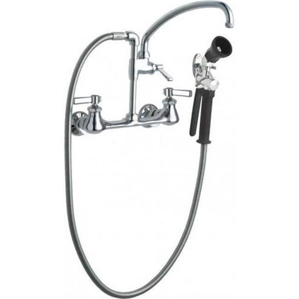 Chicago Faucets 509-GXKCAB Lead Free Wall Mount Pot Filler & Pre-Rinse Chicago Cartridge Plate, Polished Chrome