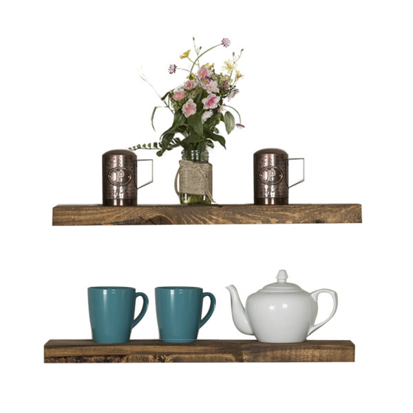 Wood Floating Shelves Set of 2 - Rustic Floating Shelf 24 inch - Made in Europe - Wide Wooden Wall Shelves for Living Room Bedroom Kitchen Bathroom ...