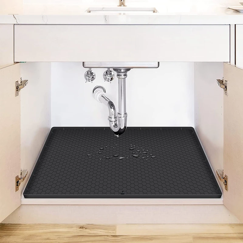 Under Sink Mat,Silicone Under Sink Liner, Under Kitchen Sink Mat With Unique Drain Hole Design,Under Sink Tray For Drips