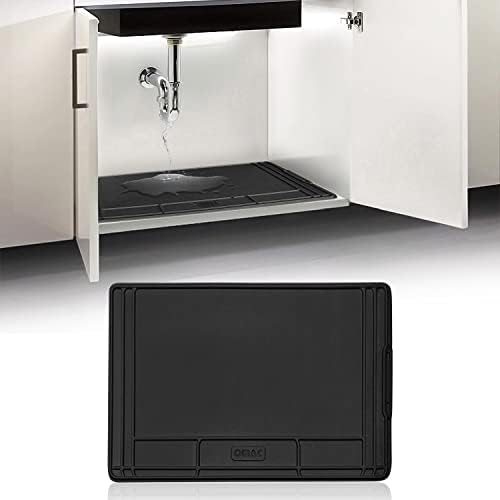 OMAC Black Under The Sink Mat | Kitchen Cabinet Mat Trimmable Waterproof Raised Edge Cabinet Liner Protector for Kitchen and Bathroom Cut To Fit ...