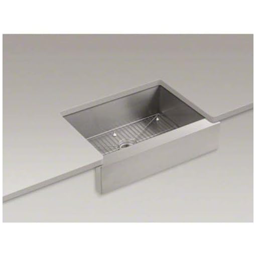 Farmhouse apron front Kitchen Sinks at Lowes.com The Vault apron-front kitchen sink combines the sleek, modern look of stainless steel with the traditional farmhouse style. Made to seamlessly coordinate with a variety of decors, this sink features a single bowl with tightly angled corners to maximize basin space, and a top-mount design for easy installation and use on most laminate ... KOHLER Vault Undermount Stainless Steel 25 in. 3-Hole Single Basin ... KOHLER Vault Drop In/Undermount Stainless Steel 33 in. 1-Hole Double Bowl Kitchen Sink with Simplice Faucet ( 3) $75652 KOHLER Vault Stainless Steel 15 in. 1-Hole Dual Mount Bar Sink ( 7) $49943 KOHLER Vault Farmhouse Drop-in Apron Front Self-Trimming Stainless Steel 36 in. 3-Hole Double Bowl Kitchen Sink ( 14) $94624 $1051.38 Save $105.14 ( 10 %) KOHLER Vault 15" Single Bowl 18-Gauge Stainless Steel Entertainment Bar ... This item KOHLER Vault 15" Single Bowl 18-Gauge Stainless Steel Entertainment Bar Secondary sink with Single Faucet Hole K-3840-1-NA Drop-in or Undermount Installation KOHLER Task Kitchen Sink, Stainless Steel Dual Mount Single Bowl, 33" Workstation Sink, 1 hole faucet, K-80084-1PC-NA