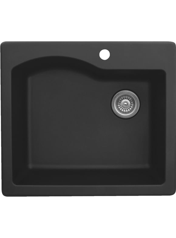 Tuscany Dual Mount 17" Black Quartz Composite Single Bowl Kitchen Sink Description & Documents. This design is both practical and stylish, thanks to its large bowl. It is made of a highly durable quartz composite material and is designed to withstand the most demanding daily kitchen duties. This undermount design comes in a variety of exquisite color selections and is the ideal match for your kitchen sink.