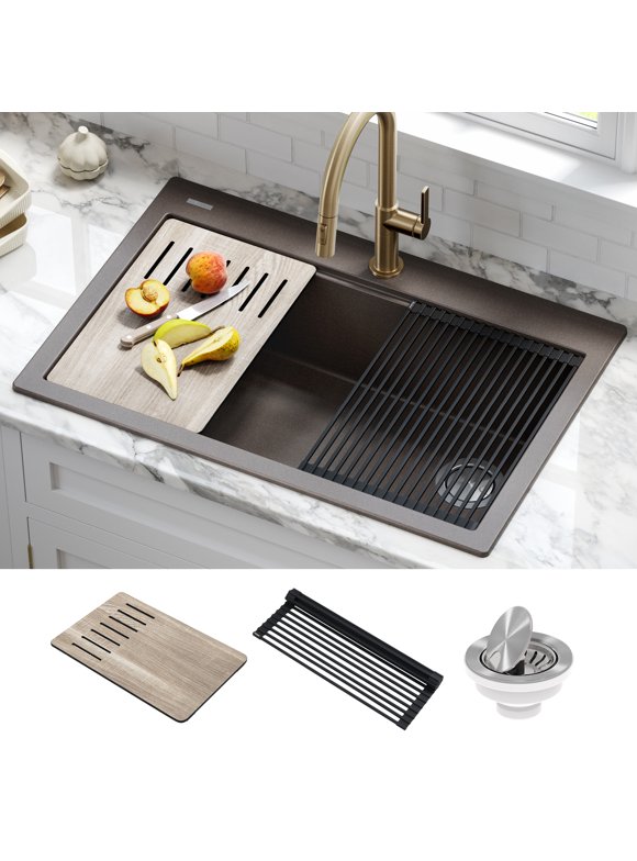 Best Black Kitchen Sinks Review: Top 8 Products (Upd. 10/2022) 33 Inch Black Kitchen Sink Drop In Workstation -Bokaiya 33x22 Black Stainless Steel Sink Topmount 16 Gauge Deep Matte Black Single Bowl Drop In Kitchen Sink with Cutting Board&Strainer View on Amazon SCORE 9.3 AI Score This score ranges from 0 to 10.