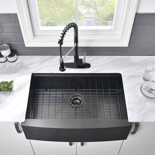 Best Farmhouse Sink of 2022 - Reviews & Consumer Report The ALWEN 33 inch Black Kitchen Sink Stainless Steel 10 inch deep, ALWEN Gunmetal Apron Kitchen Sink, 16 Guage Black Sink with Bl is an ideal kitchen sink for you. It is made of stainless steel and has a smooth finish. It has a 10-inch deep capacity and comes with an adjustable spout that allows you to adjust the height of the sink to your liking.