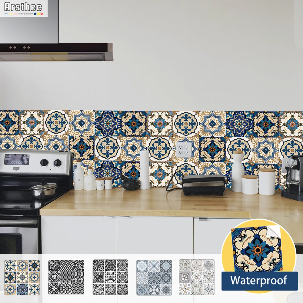 Decorative Retro Moroccan Tiles PVC Tile Stickers,Grey color Wall Art Decal,Adhesive Waterproof Kitchen Backsplash Bathroom Deco