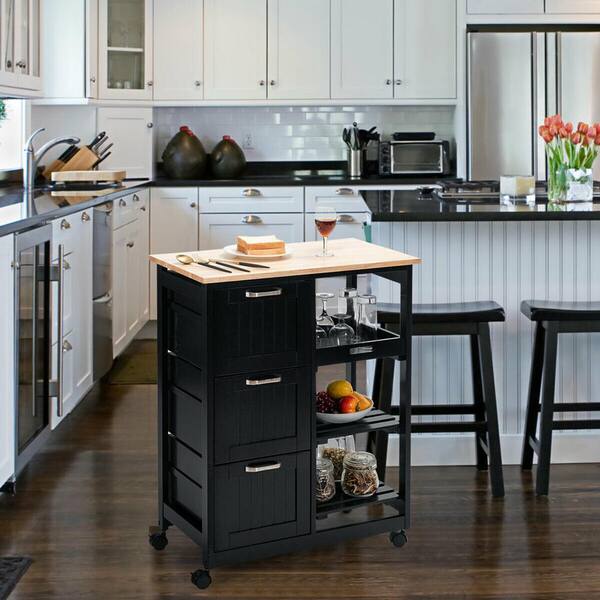 Kitchen Island with Stools, Folding Kitchen Island Trolley Cart, Rolling Cart with Drawers, Portable Breakfast Bar, Drop Leaf Dining Table Set for ...