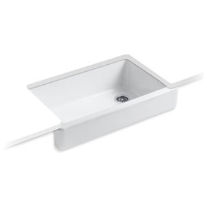 Kohler Whitehaven 35-11/16" Farmhouse Undermount Self ... Shop for the Kohler K-6489-0 White Whitehaven 35-11/16" Farmhouse Undermount Self-Trimming Single Basin Apron Front Cast Iron Kitchen Sink and save. Whitehaven® 32-3/4" undermount single-bowl farmhouse kitchen sink Fits minimum 33" (838 mm) apron sink base cabinet. Single bowl. 9" (229 mm) depth provides generous workspace. Self-Trimming® apron overlaps cabinet face for ...