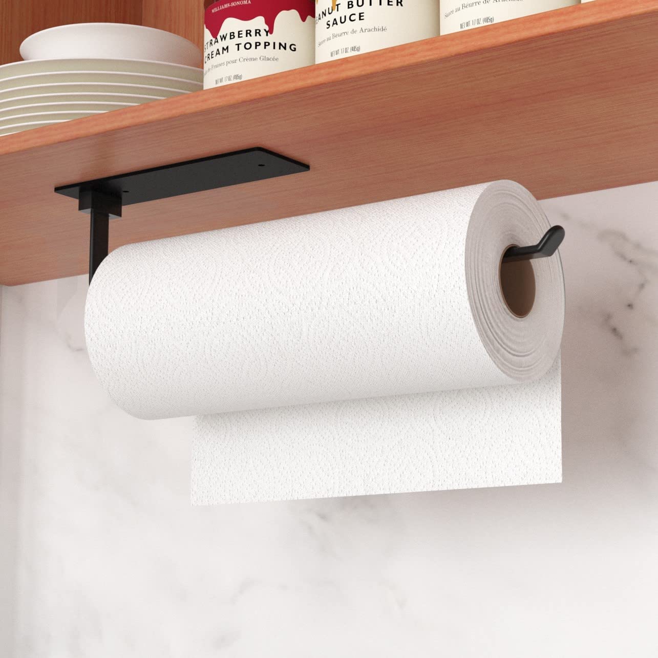 Under Cabinet Paper Towel Holder / Paper Towel Holder Wall Mount,Black Paper Roll Holder for Kitchen Self-Adhesive Under The Sink Towel Rack,Save ...