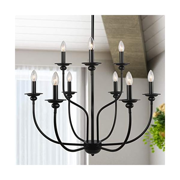 LALUZ Black Chandelier, Farmhouse Light Fixture, 2-Tier 9-Candle French Country Chandelier for Living Room, Foyer…