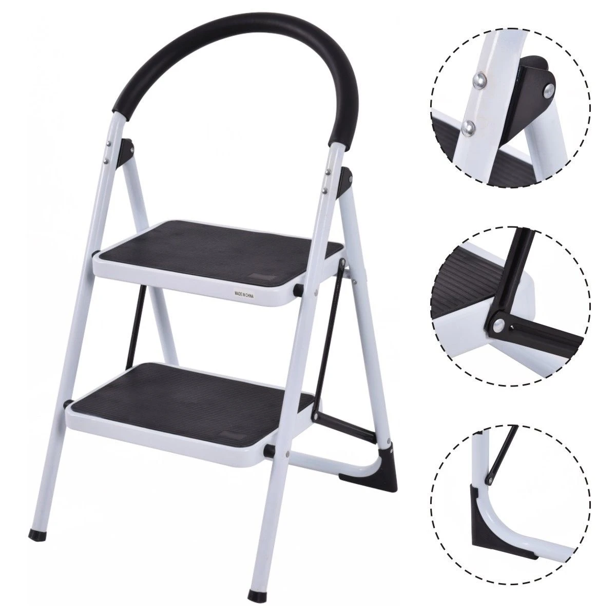 Delxo Step Ladder Folding Step Stool 2 Step Ladder with Handrails Heavy Duty Steel Wide Pedal Small Ladder Anti-Slip Portable & Collapsible Kitchen ...