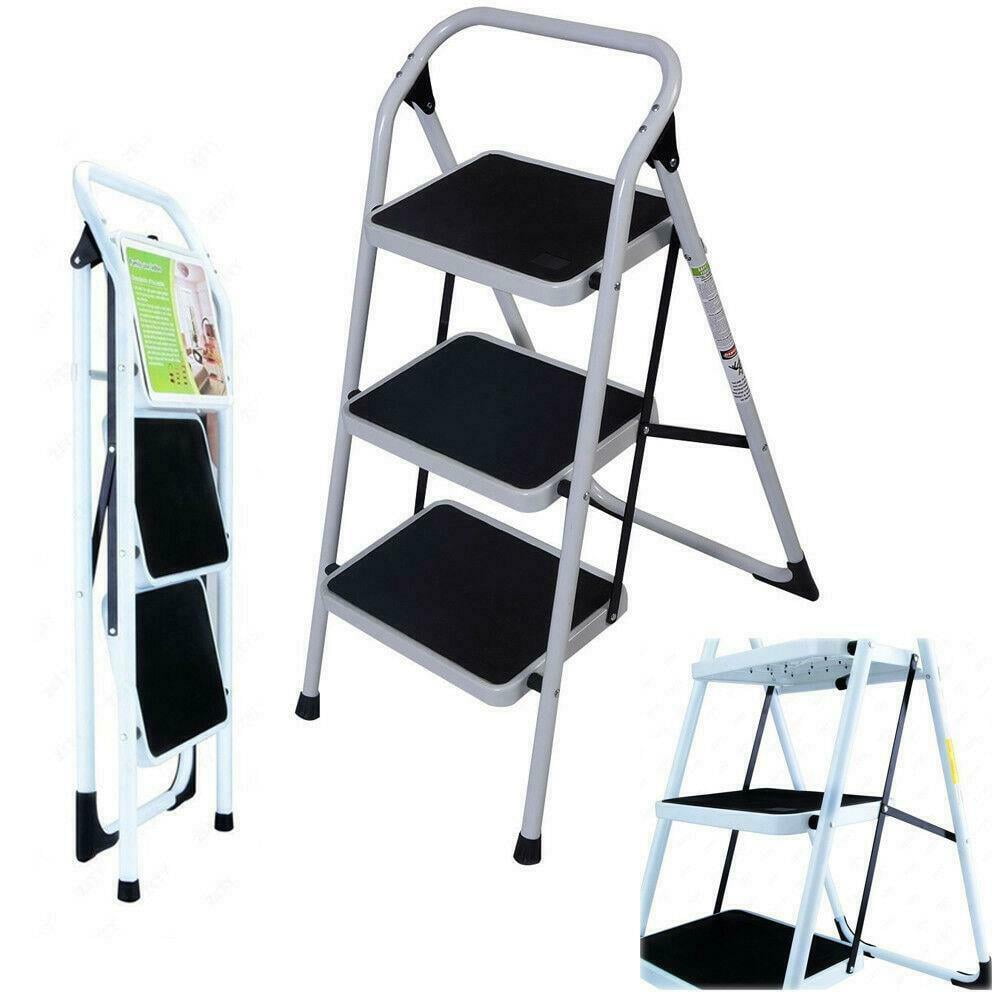 Portable Anti-Slip 3 Step Ladder Folding Lightweight Steel Step Stool Platform 330LBS Capacity - Onesize - Overstock - 34708375