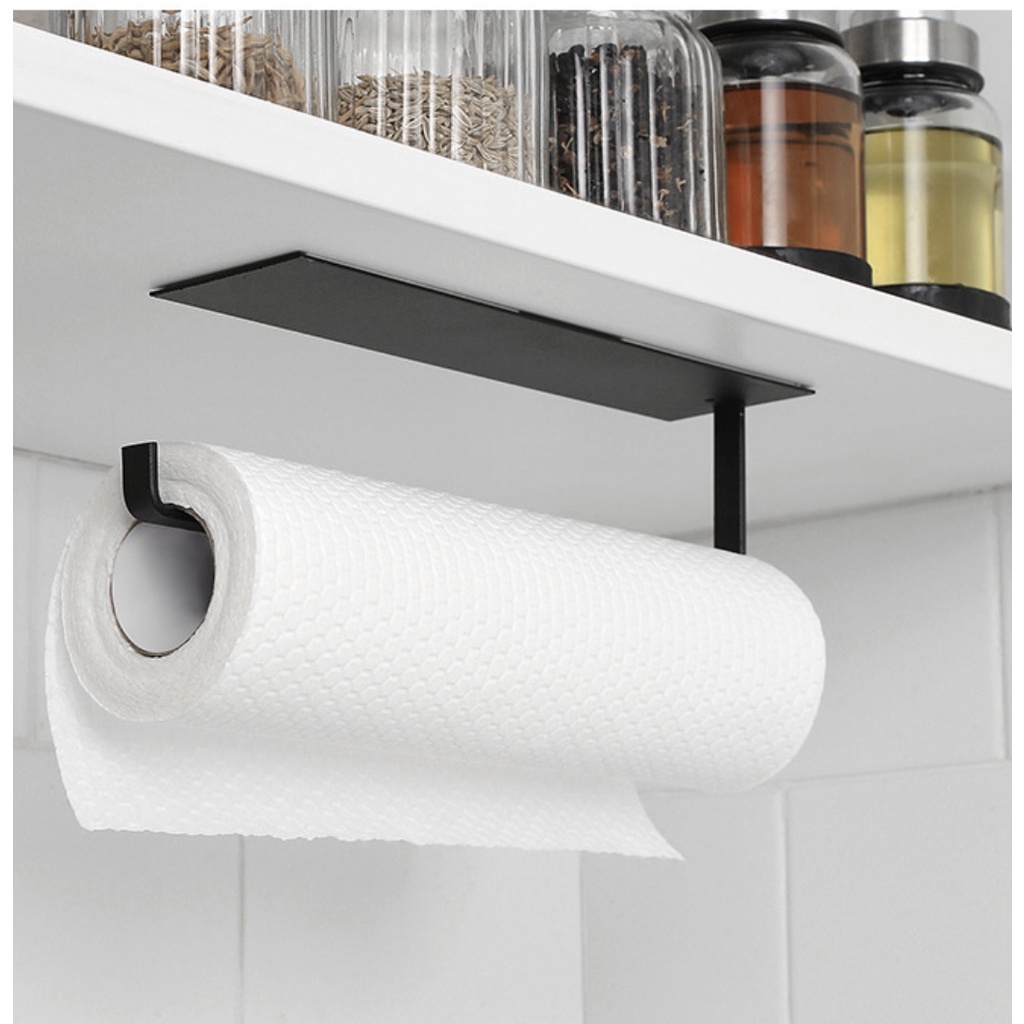 Kitchen Self Adhesive Paper Roll Holder Kitchen Towel Dispenser Storage Rack Cabinet Hanger (Black/White)