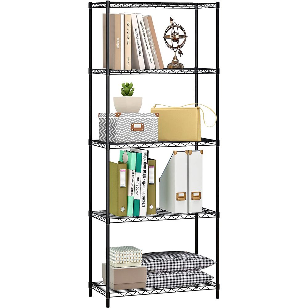 Bakers Rack with Storage 5 Tier Kitchen Baker's Rack Heavy Duty ... LARGE STORAGE BAKER RACK - This bakers rack designed with 5 tier wire shelving unit, provide an enormous amount of space. The microwave stand with storage perfect for storing and organizing kitchen storage needs, store cups, plates and other items throughout your home.